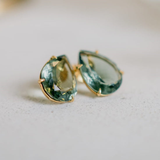 18K Gold Plated Teardrop Green Stone 10x15mm Earrings