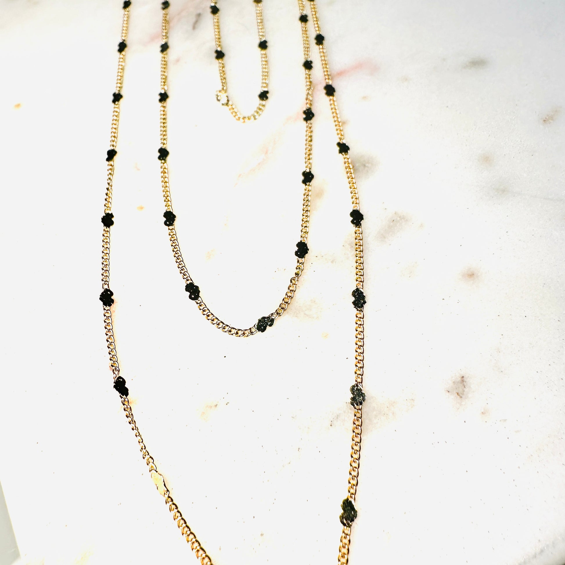 Our pieces are 18K gold-plated and water-resistant, meaning they can withstand daily exposure to water. However, they are not chemical-resistant, so we recommend avoiding perfumes, lotions, and cleaning products to maintain their shine and durability. With proper care, your pieces can last for years.