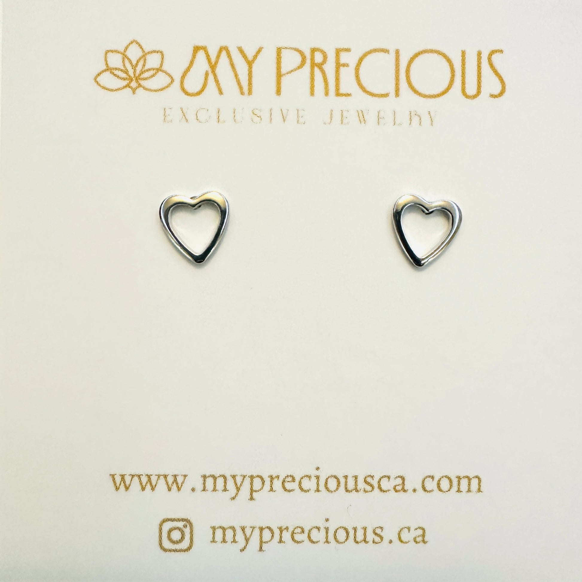 Delicate Open Heart Stud White Rhodium Plated Earrings