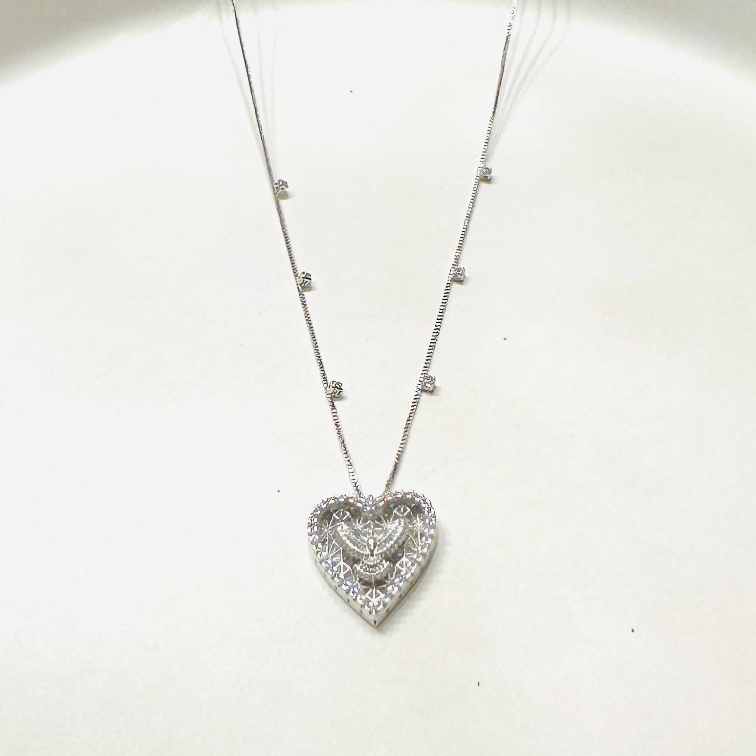 Holy Spirit in Heart Pendant Necklace - White Rhodium Plated
