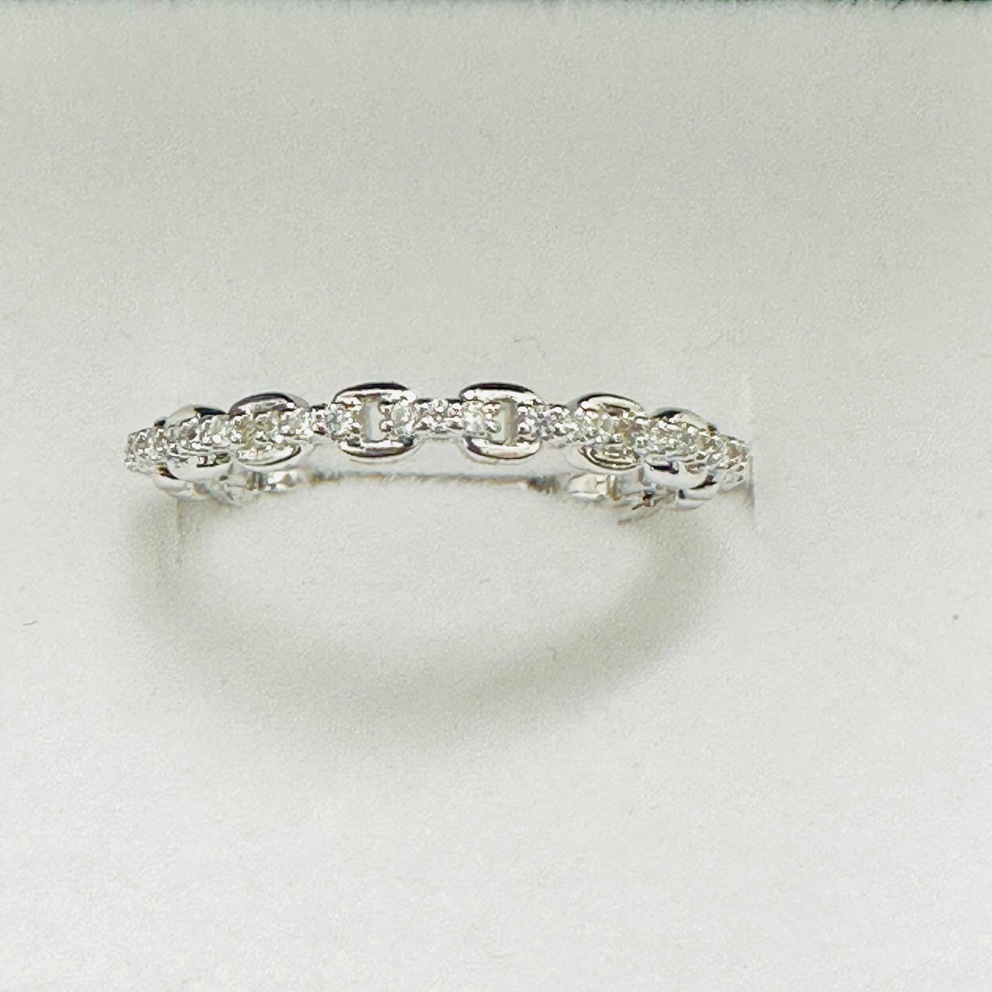 Thin Adjustable Mini Zircons on Links White Rhodium Plated Ring