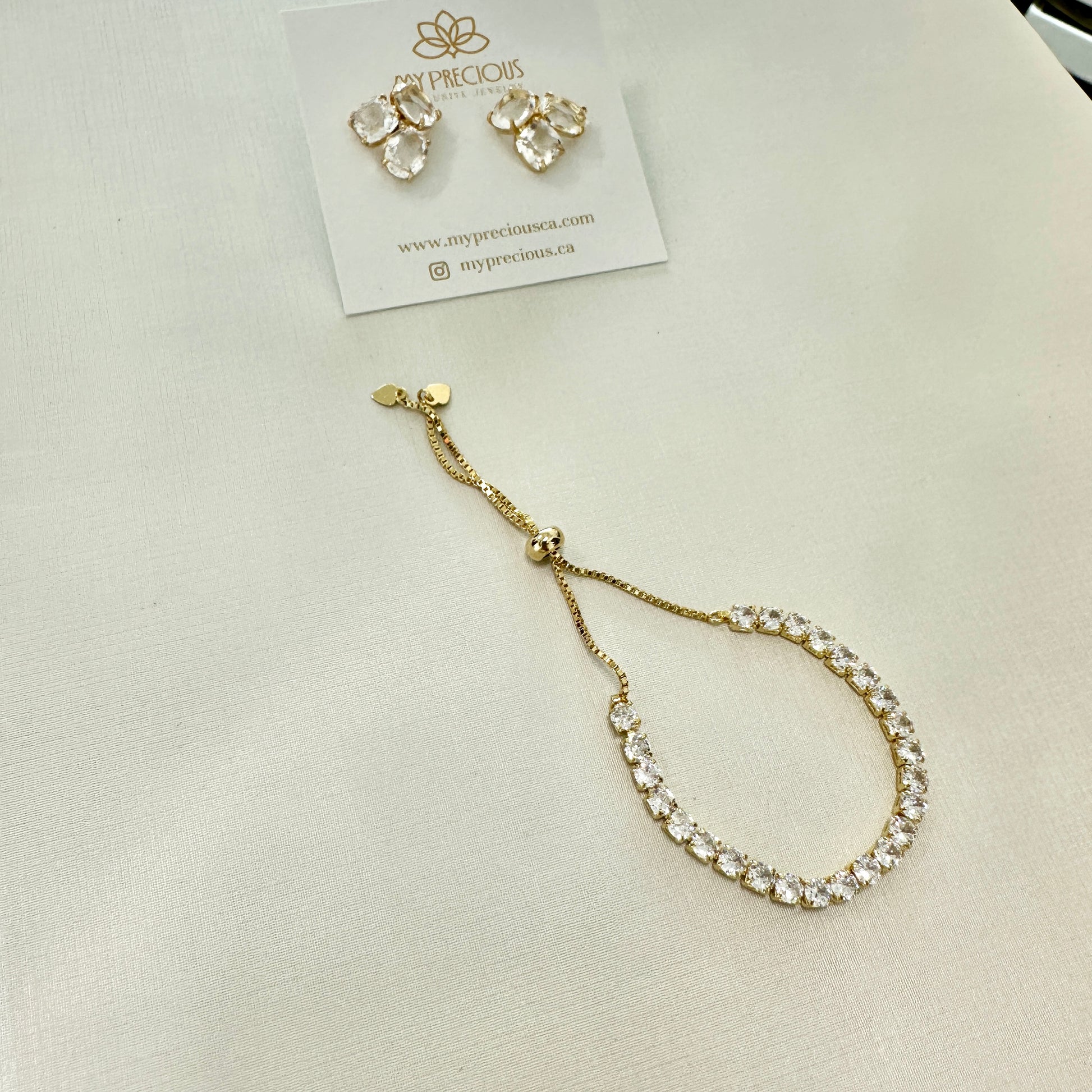 18k Gold Plated Tennis Round Zirconia Adjustable Bracelet