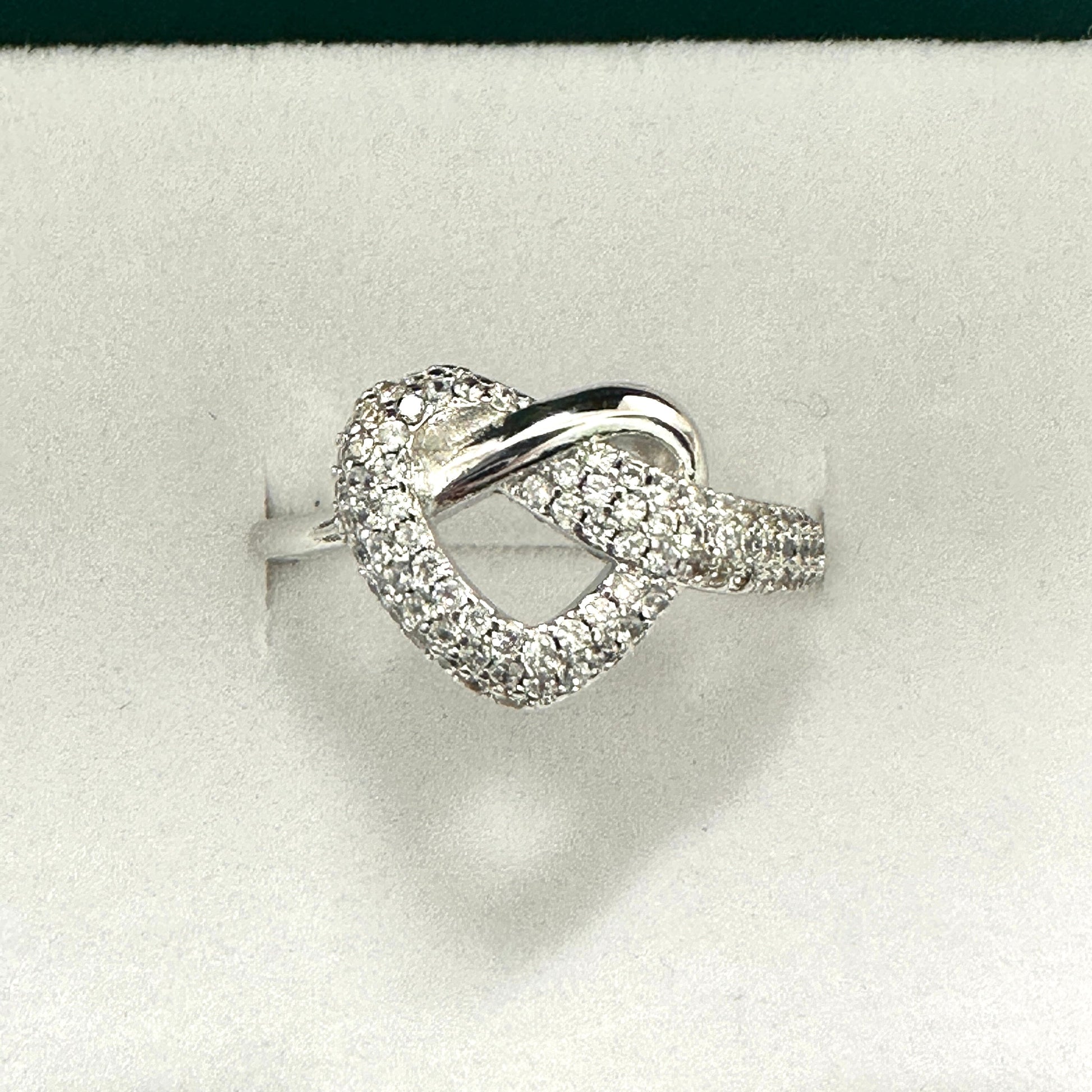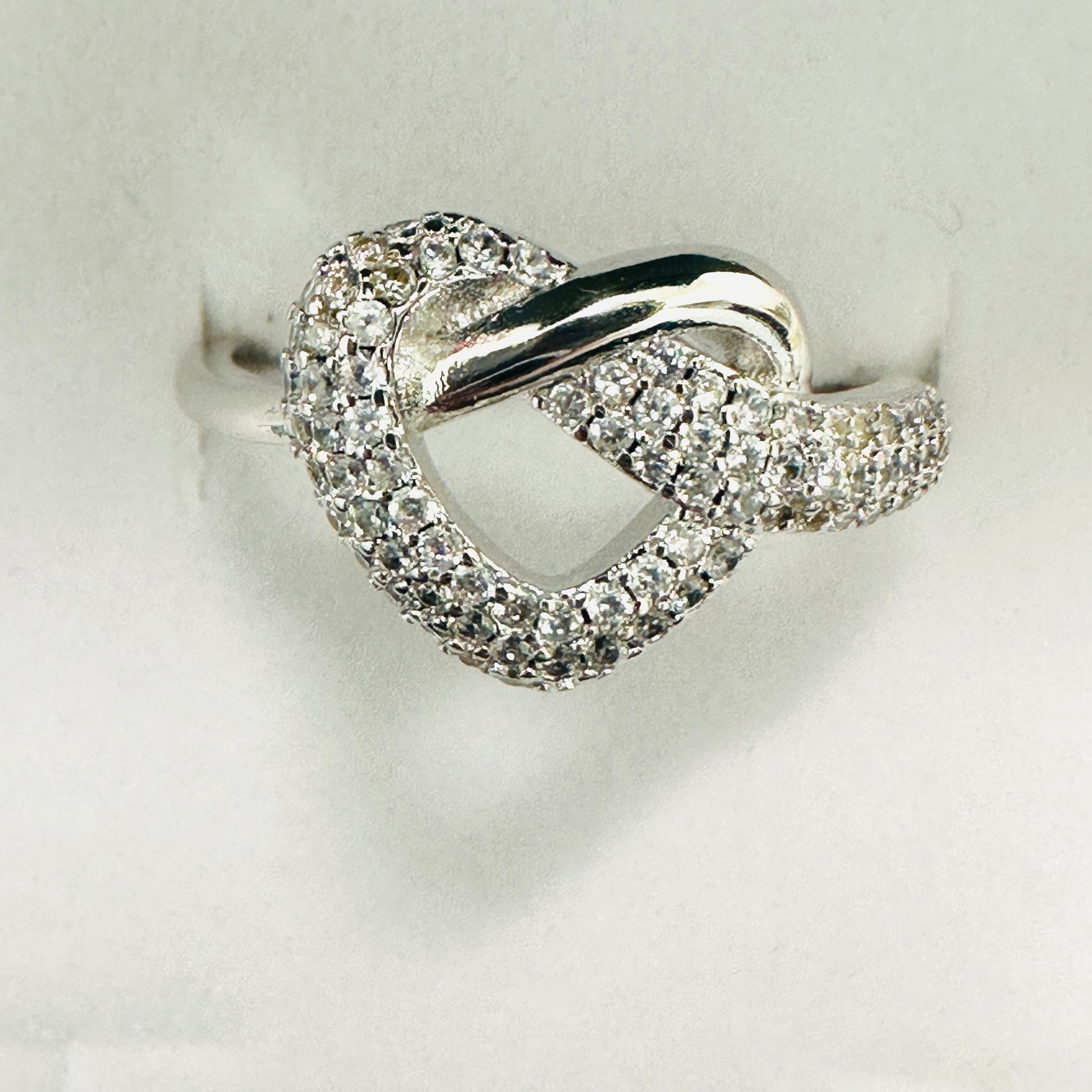 Wide Studded Zirconia Heart 18K White Rhodium Plated Ring
